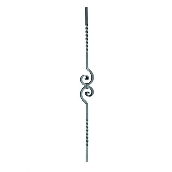 This spindle can be manufactured to a smaller size if you are wanting this reduced in height.It is manufactured from 12mm square bar. We have added twists above and below the twin curl section.